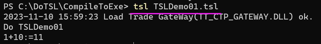 功能:执行指定tsl程序,若不在当前路径下,需要加上路径信息。