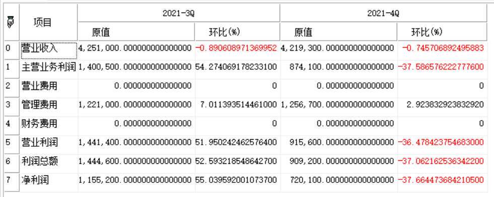 | 返回 | Array | 数组类型,返回指定证券报告期主要财务数据对比(纵比)数据 |