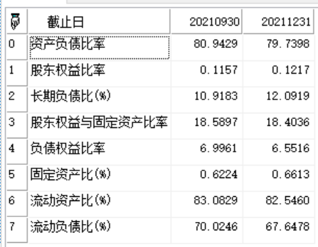 //返回万科A最近2个报告期的资本结构指标数据