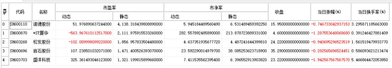 | 返回 | Array | 数组类型,返回指定板块指定日指定字段排名的市盈率数据 |