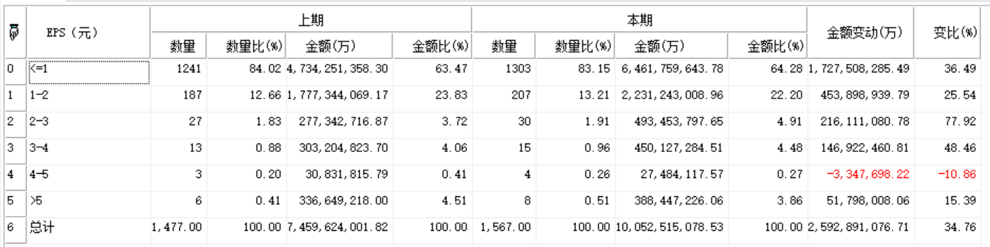 (1)一段时间以来资金在不同业绩之间的流向及同比