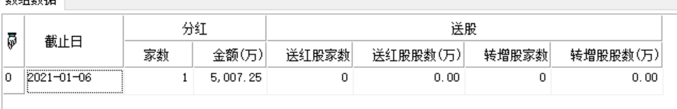 | 返回 | Array | 数组类型,返回指定板块指定区间分红送股数据 |