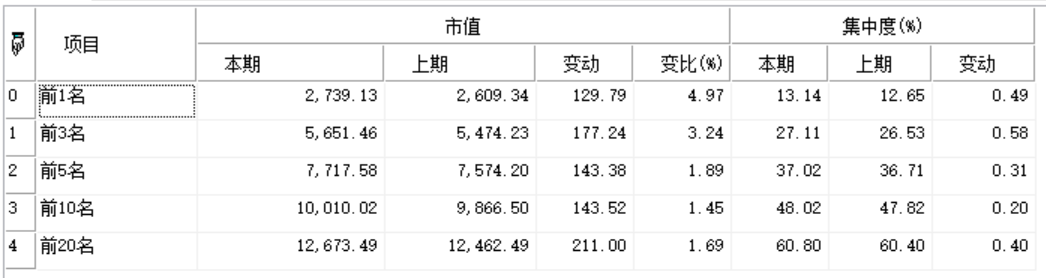 | 返回 | Array | 数组类型,返回指定区间指定板块的持股集中度变化 |