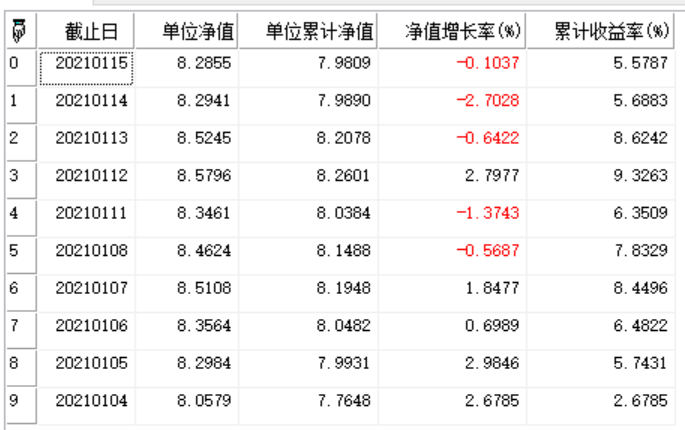 | 返回 | Array | 数组类型,返回指定基金在指定区间的净值数据。 |