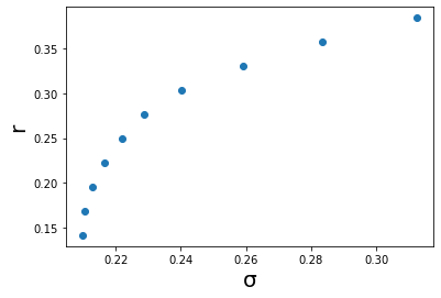 对输出结果“组合收益风险”中的每个预期收益率和标准差画在坐标系上,横坐标为标准差,纵坐标为预期收益率,即得到“有效边界”。如下图: