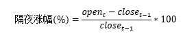 计算隔夜涨幅(%),与系统证券、时间、周期相关