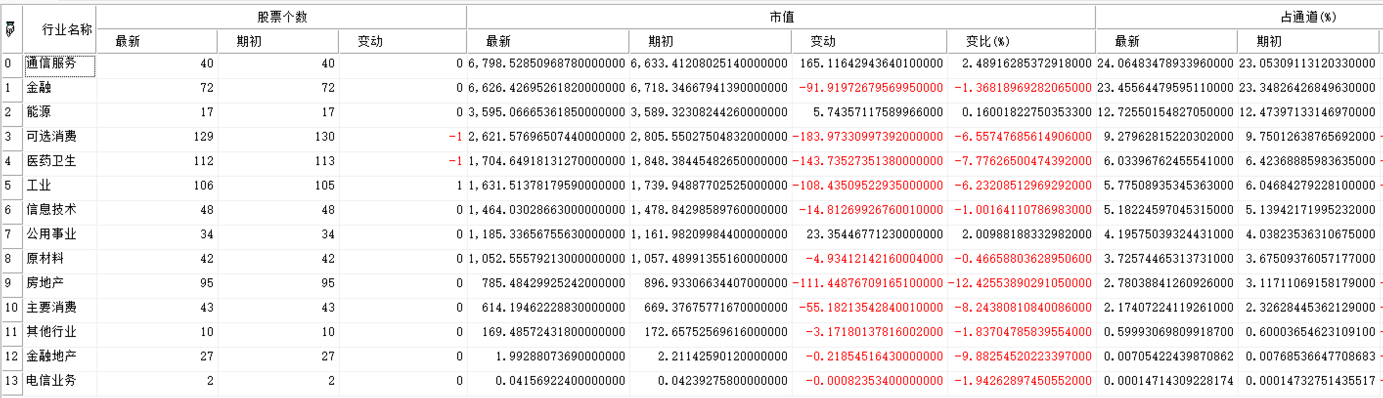 | 返回 | Array | 二维数组,沪深港通板块最新行业市值及最近1月变动。 |