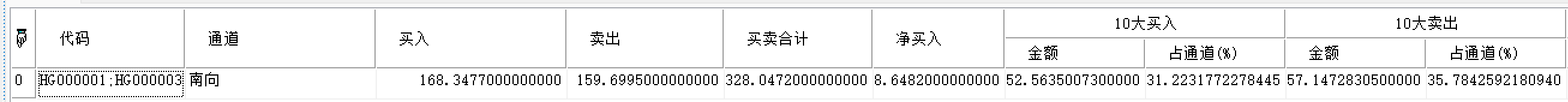 | 返回 | Array | 二维数组,指定日指定沪深港通道十大成交统计。 |