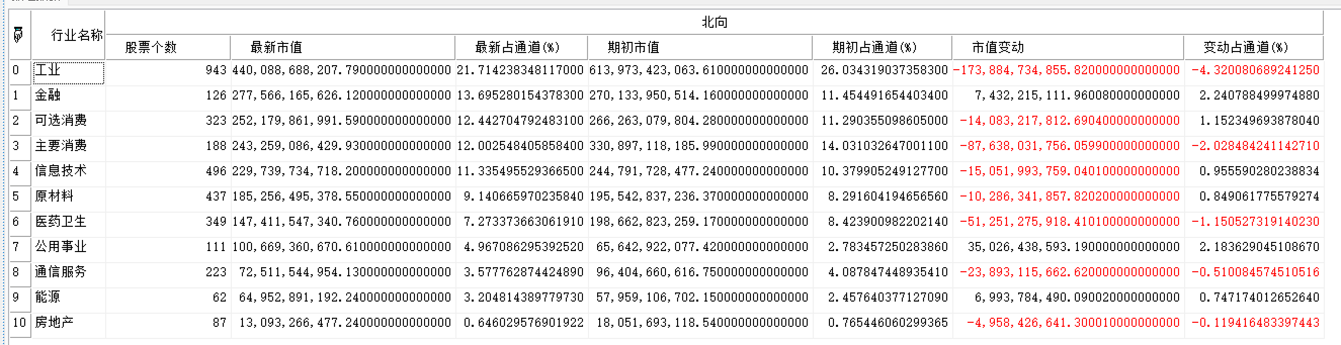 报表,获取陆股通区间行业配置及变动(市值单位:亿元)