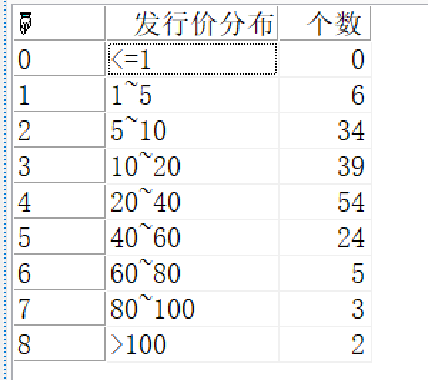 //返回2023-07-10至2024-07-10日A股中所有股票的发行价分布