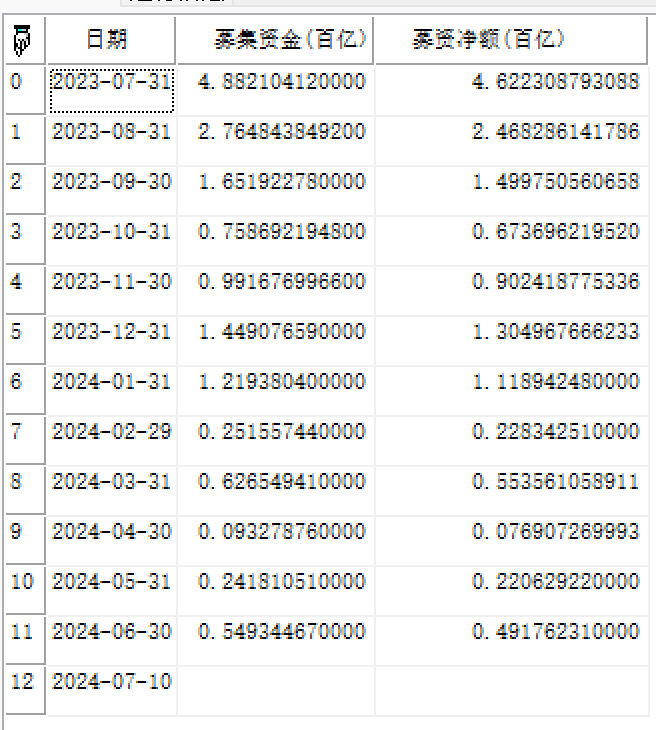 //返回2023-07-10至2024-07-10日A股汇总发行上市基本信息