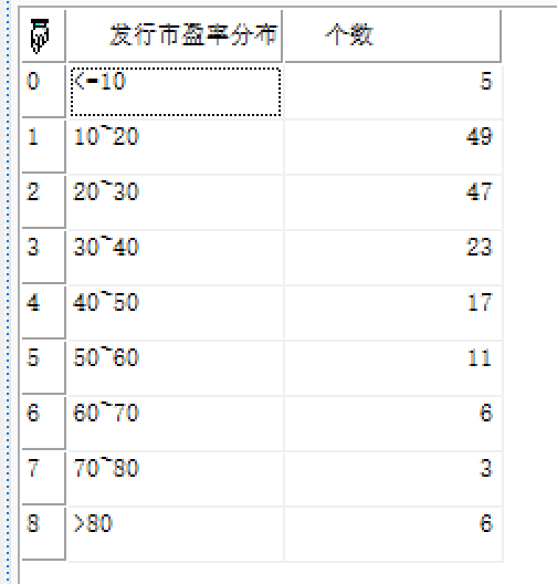 | 返回 | Array | 数组,从开始日期到截止日期指定板块中所有股票的市盈率分布。 |
