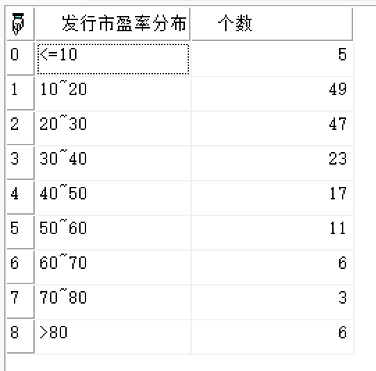 | 返回 | Array | 二维数组,从开始日期到截止日期全市场中所有股票的市盈率分布。 |