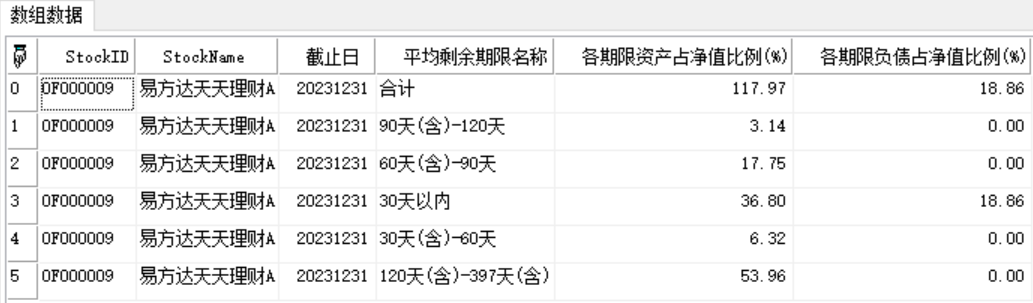 | 返回 | Array | 数组。指定报告期的平均剩余期限分布情况。 |
