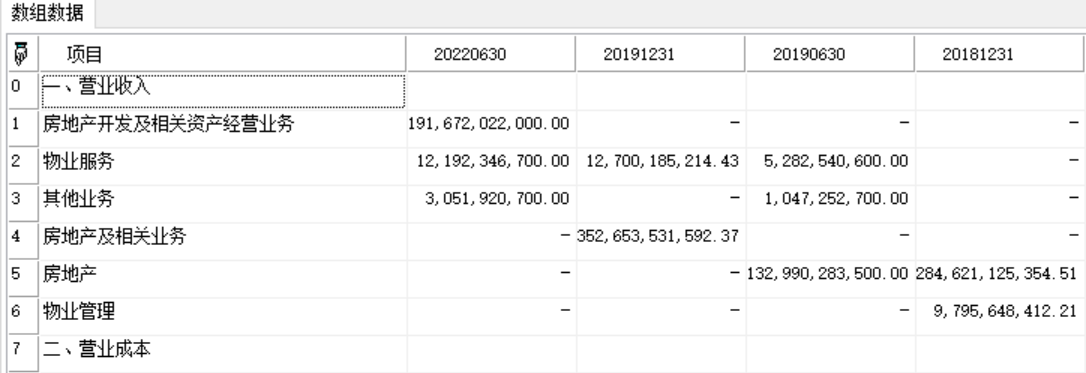 //返回万科A4个报告期公布的主营收入及成本(分产品)。