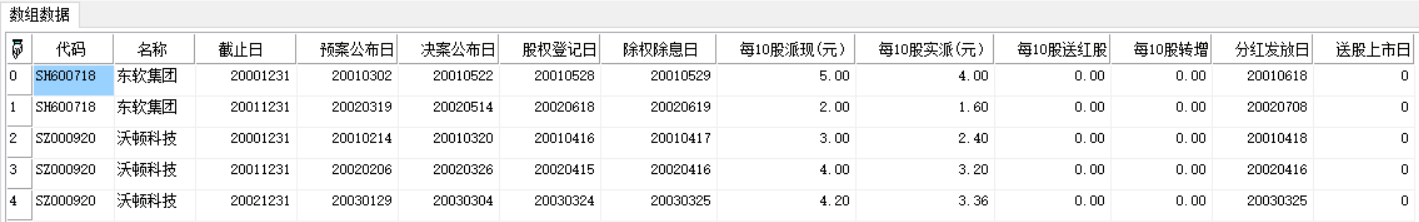 | 返回 | Array | 数组。股票列表指定区间内送股情况。 |