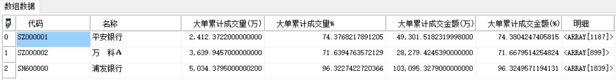 | 返回 | Array | 数组。大单成交明细数据。 |