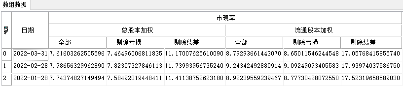 | 返回 | Array | 数组。板块列表市现率(纵比)。 |