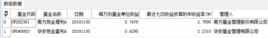 return CurrencyFundNetAssetWeeklyList_Call(array("OF040003","OF202301"),20181201T,"每万份基金单位收益",0,5);