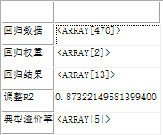 其中回归数据中标准溢价率(%)为转债当前转股价值根据回归系数计算出的溢价率(%),估值偏差即为回归残差。回归权重即为回归的系数。回归结果为回归的整体结果,包括回归系数、残差、回归检验等,返回同Regression。典型溢价率即为当日按照所给Tvalues中的转股价值通过回归计算出的溢价率。