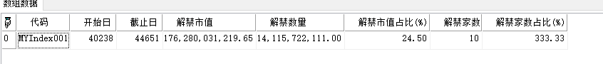 返回Array功能:获取指定股票池区间限售股解禁指标数据值