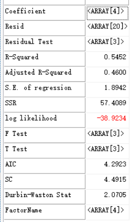 参考Regression返回结果,其中显著性水平取值0.05,包含常数项