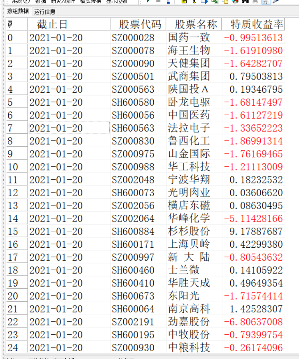 | 返回 | array | 数组, 指数成分股最新特质收益率(%) |