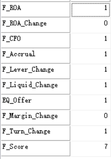 //返回一维数组,如下图,最终F Score=7,说明该公司质量好