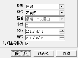 按钮,弹出可设置周期、是否复权、复权基准日、开始日、截止日、日期等的窗口。如下图所示。