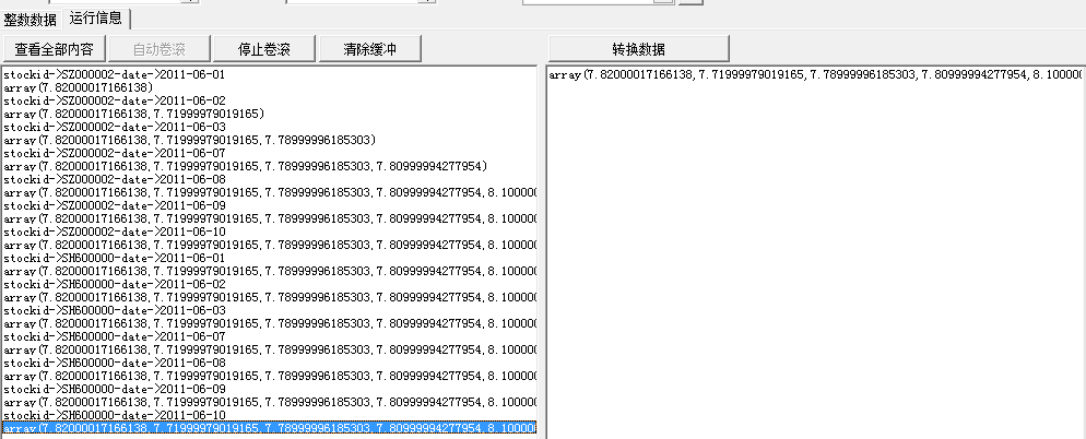 //打印出的数据格式为:’stockid->’SZ000001-‘date->’20110101