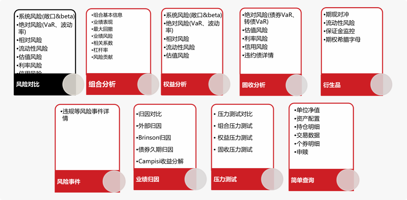 包含组合对比,单组合评价。涵盖事前风险分析及事后风险分析等。